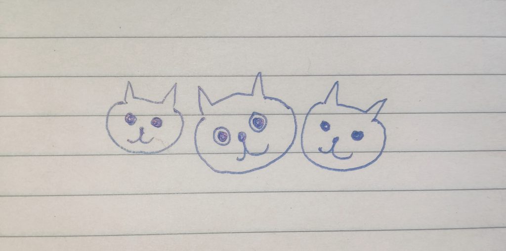 行政書士試験の勉強も含め私の毎日を支えてくれた3匹の白猫たちへの感謝の思いと、これからも一緒に支えてねという思いを込めました。